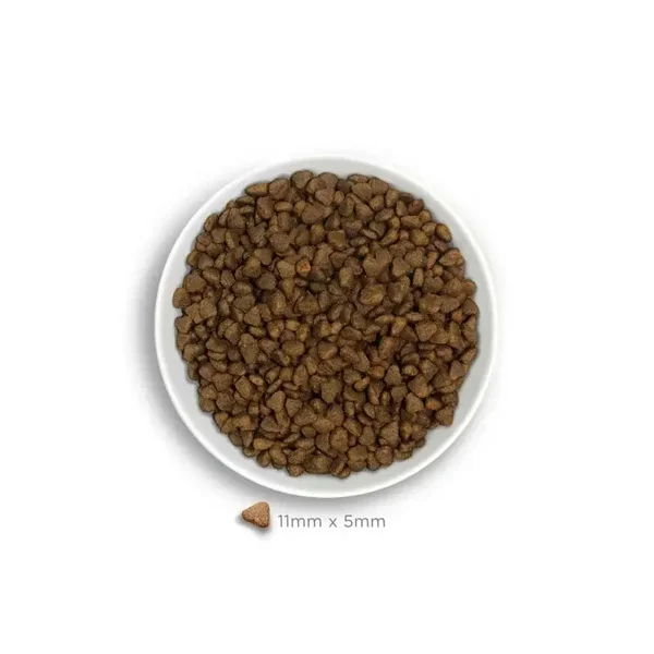 ruw eiwit 27,00%, ruw vet 18,50%, omega-3-vetzuren 0,50%, omega-6-vetzuren 2,65%, ruwe celstof 2,50%, ruwe as 7,25%, calcium 1,30%, fosfor 0,90%, metaboliseerbare energie 3965 kcal/kg.