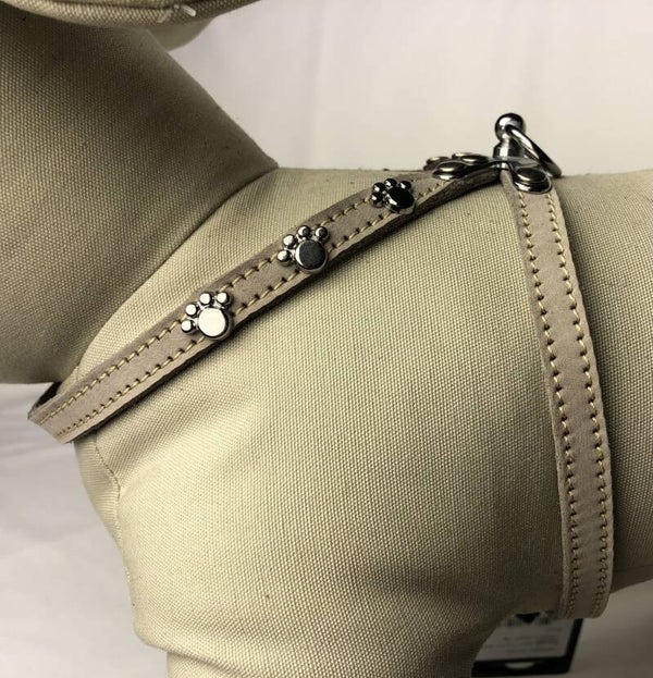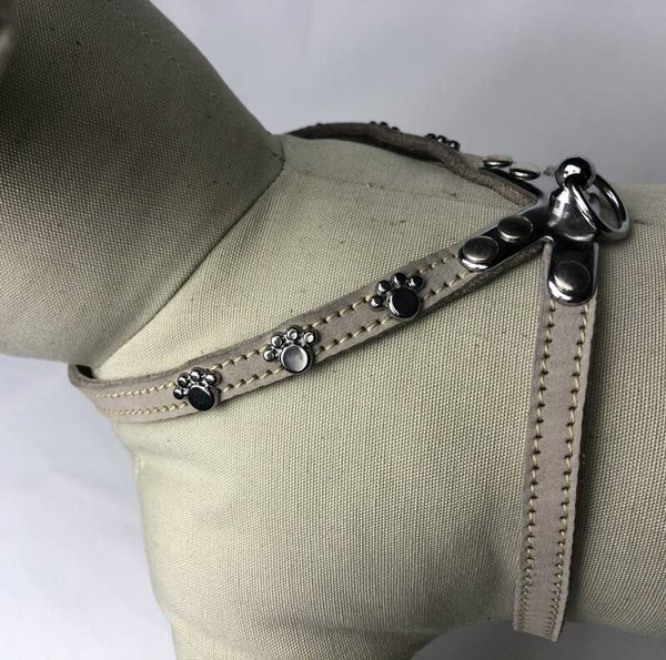 Dit tuigje is gemaakt van nubuck leer. Nubuck heeft een fluweelachtige uitstraling ontstaat en het zacht aanvoelt.